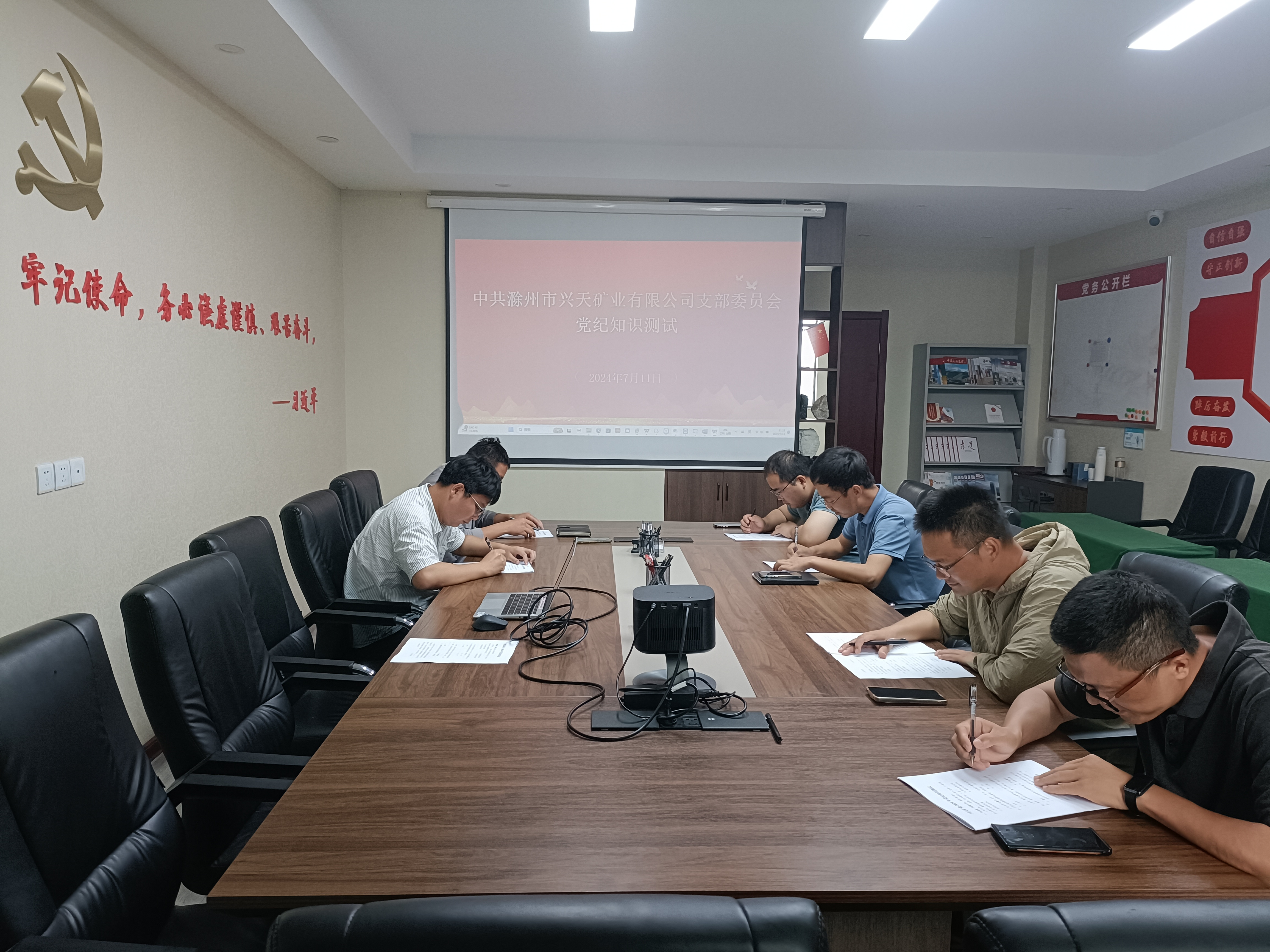 為推進(jìn)黨紀(jì)學(xué)習(xí)教育走深走實(shí),7月11日,興天礦業(yè)黨支部開展黨紀(jì)知識(shí)測(cè)試,全體黨員參加。