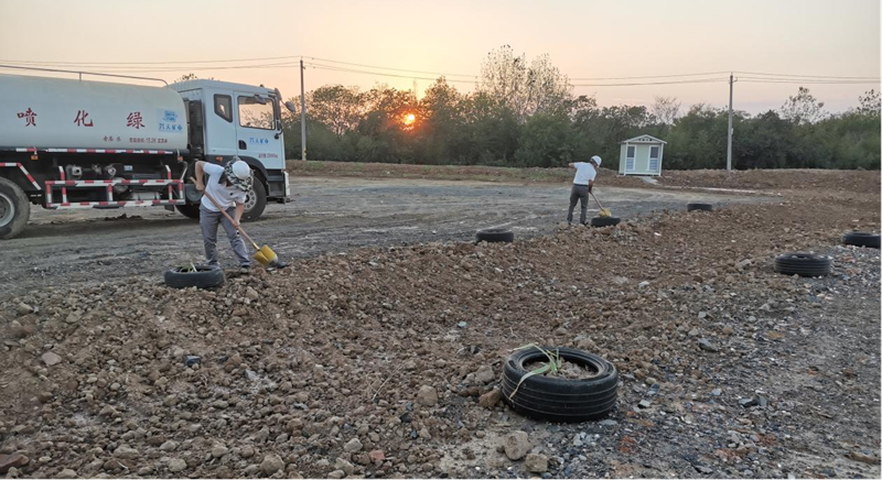 在具備種植條件后,公司陸續(xù)開展移栽樹木、種植花草、澆水養(yǎng)護(hù)等工作。經(jīng)過一個(gè)多月的努力,原本荒蕪的礦區(qū)已經(jīng)悄然發(fā)生變化,路邊播撒的草種和格?;ǘ家寻l(fā)了芽。放眼望去,一抹抹淡綠色生機(jī)盎然。